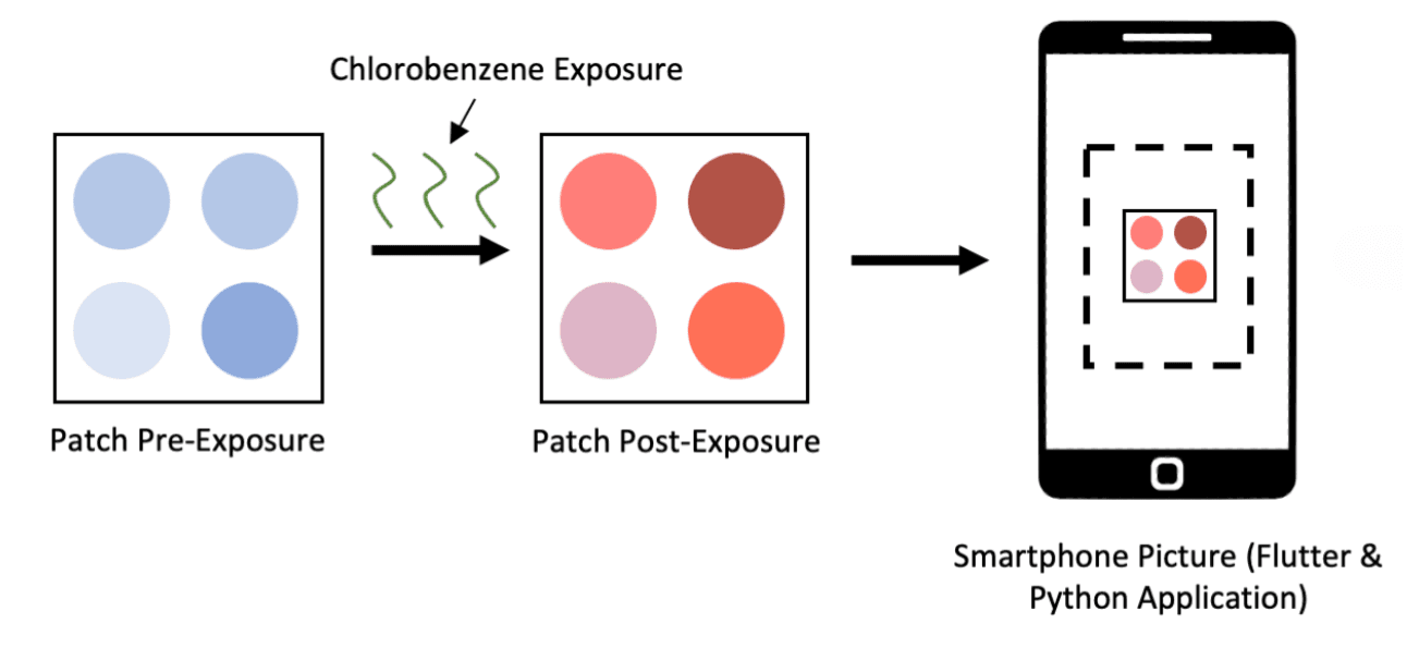Solution: Engineered chemical dots (polydiacetylenes) that change color to detect VOCs